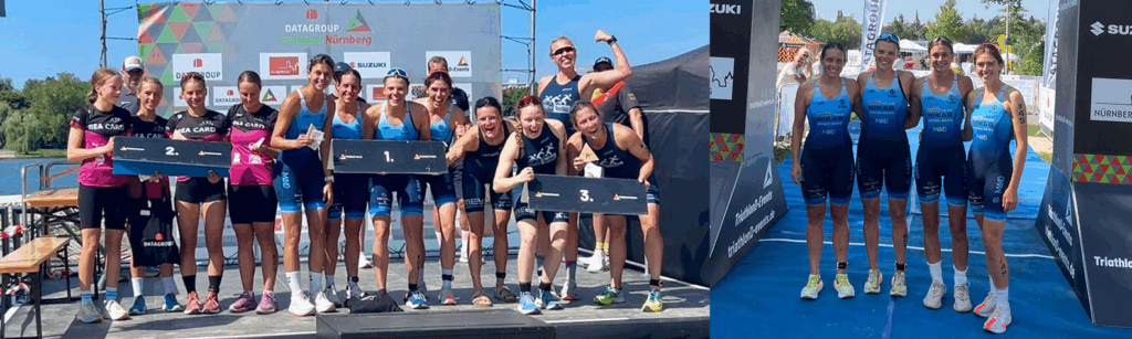 In der 2×2-Paarstaffel über 375 m Schwimmen, 10 km Radfahren und 2,5 km Laufen zeigten die Athletinnen Hanna Schugt, Laura Schön, Kathrin Halter und Teamleiterin Caro Fey einmal mehr, dass sie zu den stärksten Teams der Liga gehören. 1:06:41 Stunden – Platz 1 vor Münster und Tübingen!